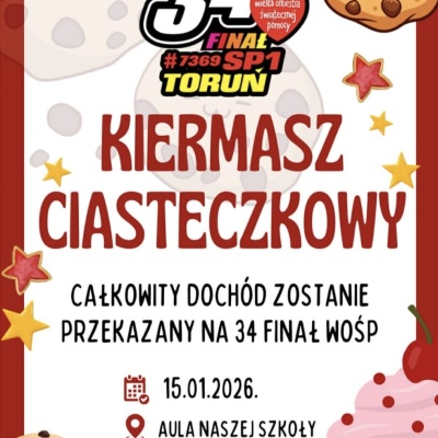 Kiermasz ciasteczkowy w SP 1 w ToruniuSerdecznie zapraszamy całą społeczność szkolną SP 1:uczniów,przedszkolaki,rodziców,nauczycieli,pracowników szkoły,wolontariuszy i przyjaciół naszej szkoły.15 stycznia 2026 r.godz. 9:00–12:00Aula Szkoły Podstawowej nr 1 w ToruniuCo się będzie działo?Kiermasz ciasteczkowy, z którego cały dochód zostanie przeznaczony na 34. Finał Wielkiej Orkiestry Świątecznej Pomocy.Ważne informacje organizacyjne:ciasta, ciasteczka, pączki i […]