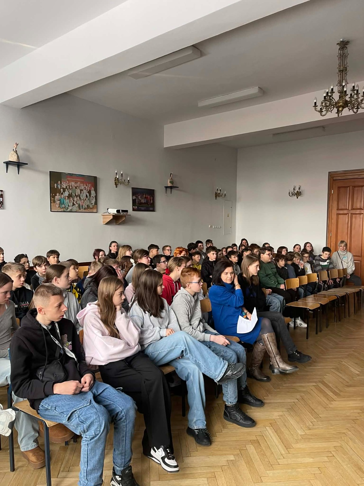 28.11.2025 r. gościliśmy w szkole grupę uczniów z Ukrainy w ramach realizowanego przez nich projektu, zgodnie z Porozumieniem między Gabinetem Ministrów Ukrainy a Rządem Rzeczypospolitej Polskiej o Ukraińsko- Polskiej Wymianie Młodzieży. Kierowniczką projektu jest mama naszego ucznia p. Marta Kossakowska.
