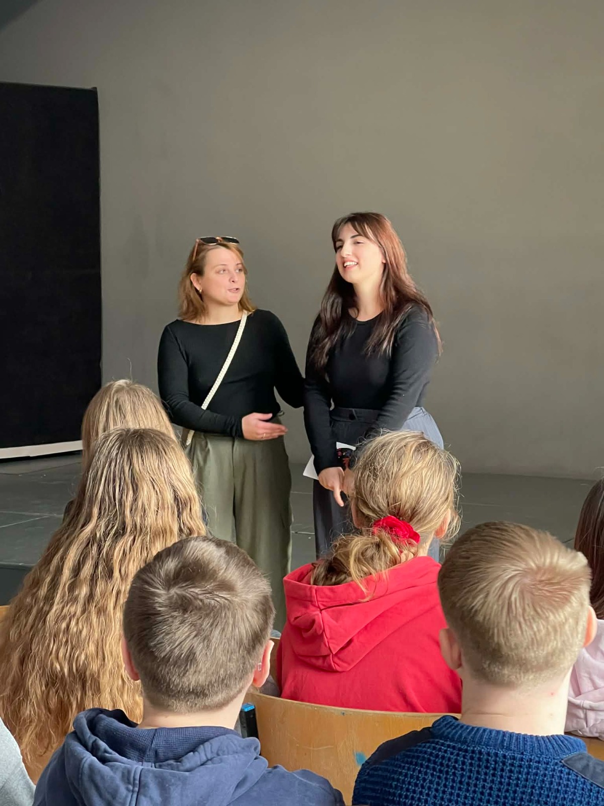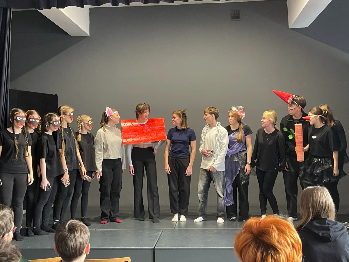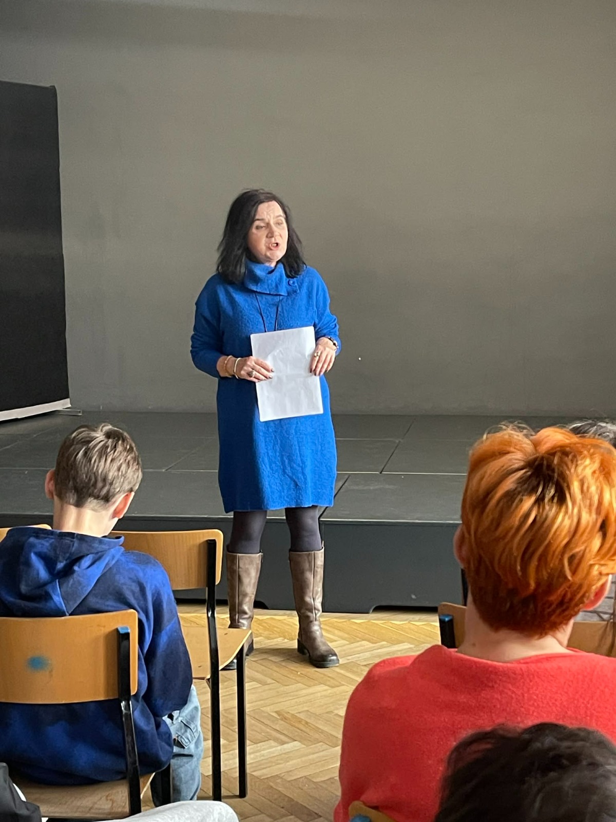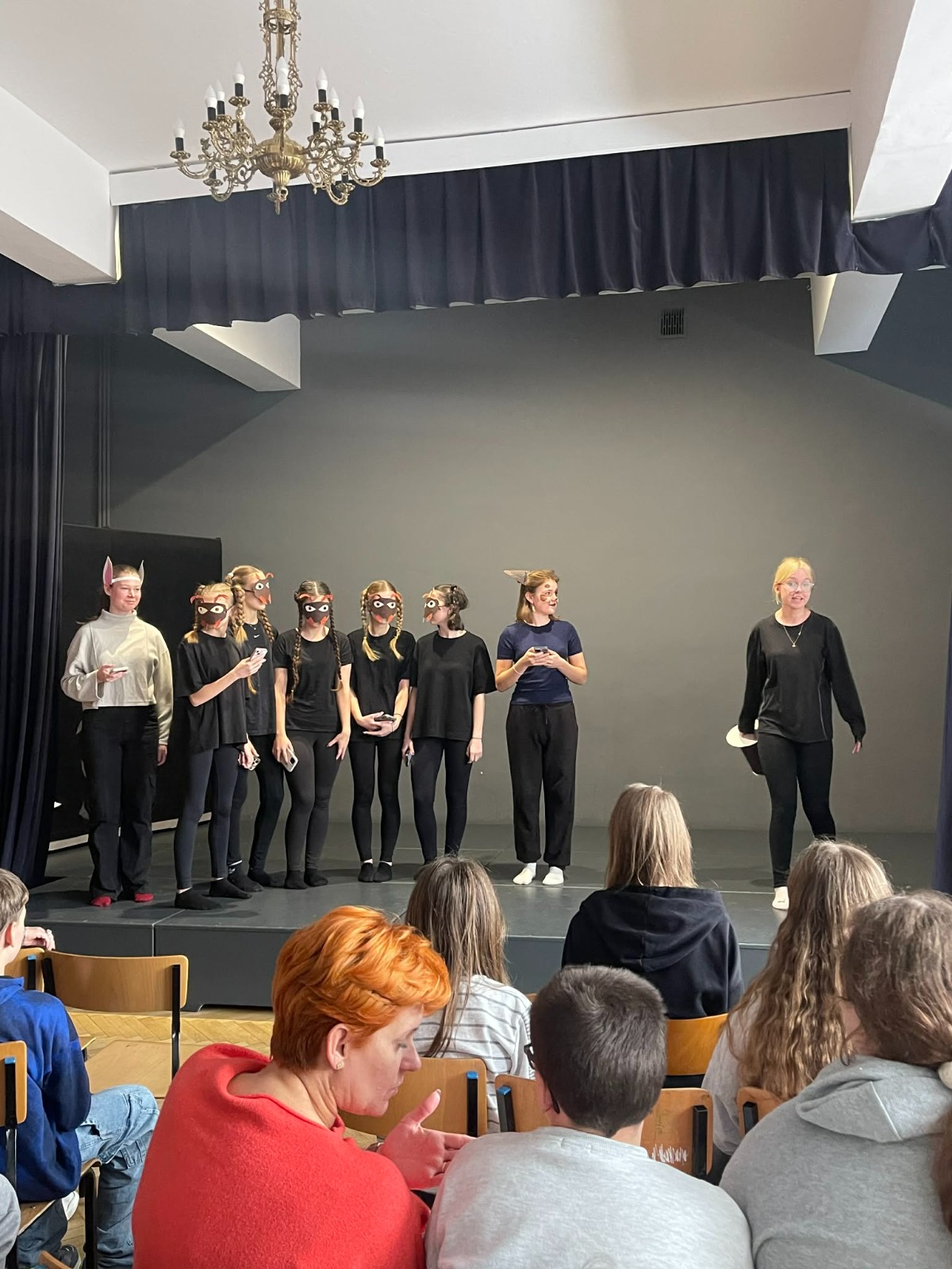 Pokaz otwierała grupa uczniów z klasy 7a, pod kierunkiem p. Honoraty Podgórskiej, pierwszą sceną przeczytaną po polsku, a dzieci z Ukrainy kontynuowały w języku ukraińskim.