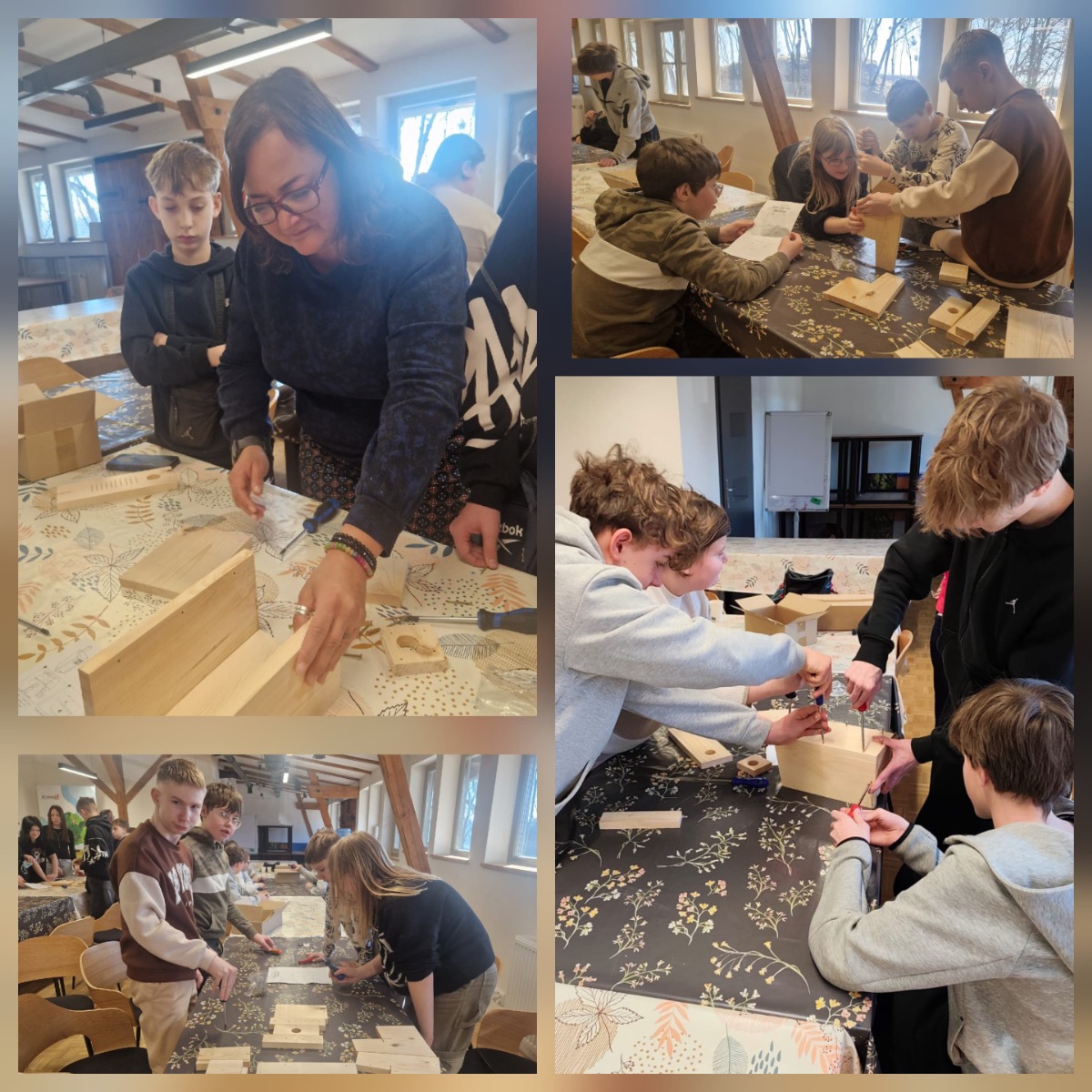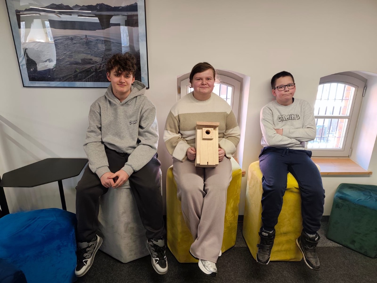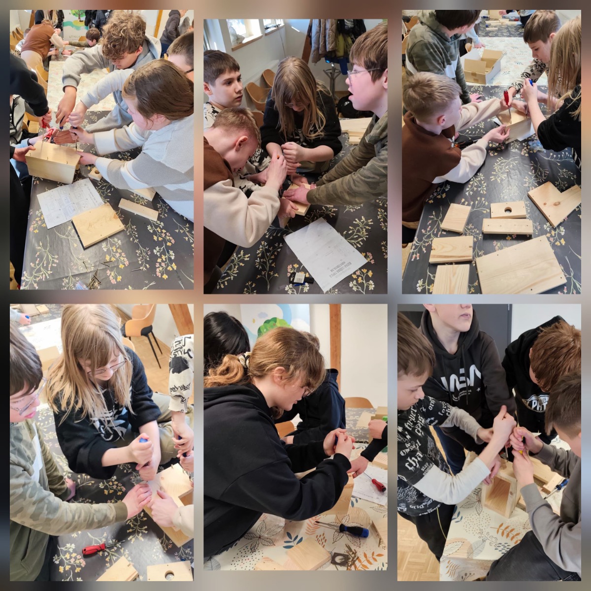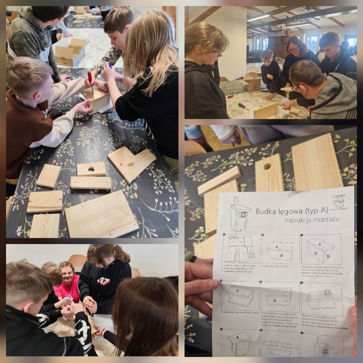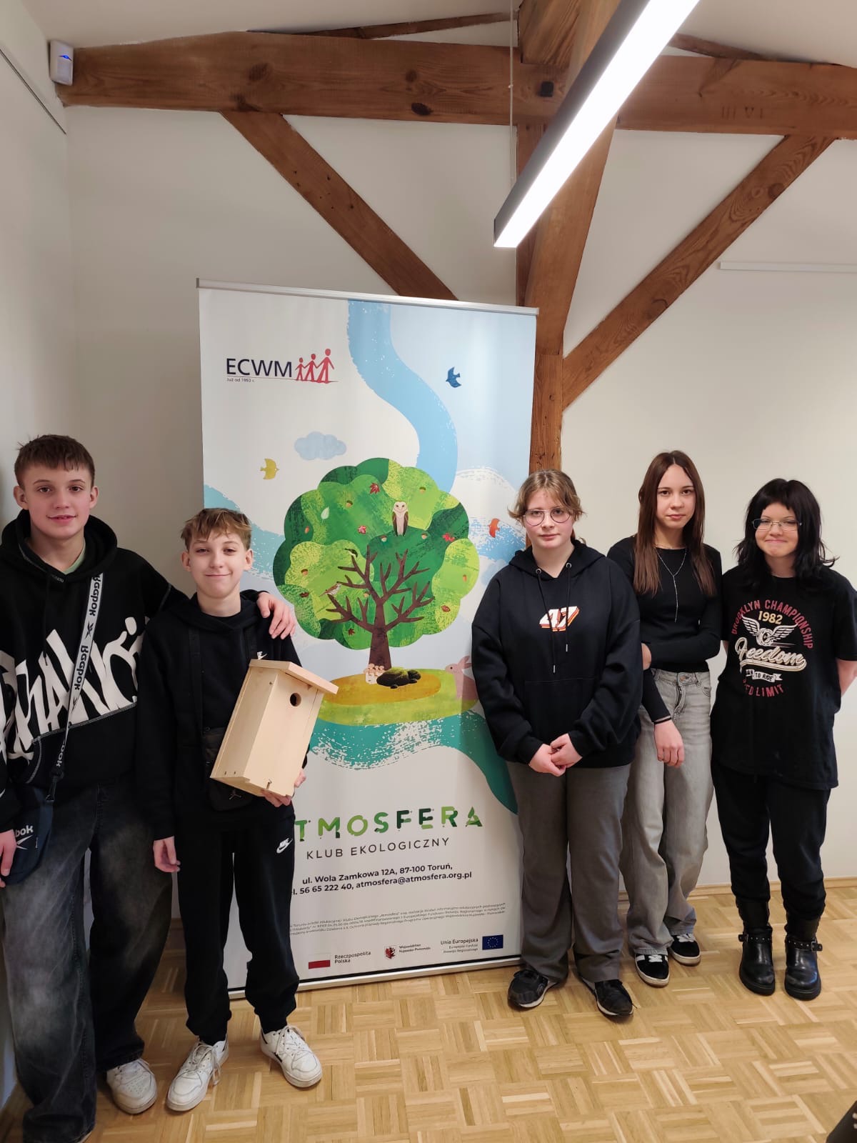 Kolejne budki lęgowe zbudowane! Tym razem klasa 6a pod opieką pani Ani Niewiarowskiej-Fujarskiej oraz pani Renaty Kalemby wzięła udział w warsztatach „Budki lęgowe – pomagamy ptakom znaleźć dom”.