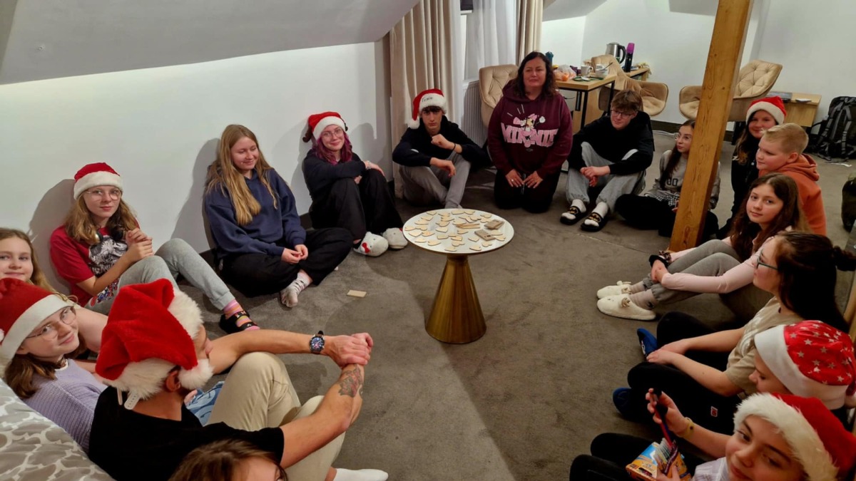 5 grudnia na wyjeździe w Przysieku Samorząd Uczniowski wraz z opiekunami w wyjątkowy sposób uczcił Międzynarodowy Dzień Wolontariusza podczas inspirującego wyjazdu do Przysieka. Był to czas pełen radości, refleksji i działania! Wspólnie zastanawialiśmy się, jakimi cechami powinien odznaczać się prawdziwy wolontariusz, i doszliśmy do wniosku, że najważniejsze wartości to: – Empatia – umiejętność zrozumienia i wsparcia drugiego człowieka, – Bezinteresowność – pomaganie z potrzeby serca, – Zaangażowanie i odpowiedzialność – gotowość do działania na rzecz innych, – Otwartość i tolerancja – szacunek wobec różnorodności. Podczas wyjazdu pełnego mikołajkowej atmosfery rozmawialiśmy o kolejnych akcjach charytatywnych, które chcemy zrealizować w naszej szkole. Dyskutowaliśmy również o nadchodzącym finale Wielkiej Orkiestry Świątecznej Pomocy , do którego już się przygotowujemy. Jak co roku, nasz sztab będzie działał z wielką energią i sercem! „Nikt nie jest tak wielki, jak ten, kto pomaga innym” – te słowa towarzyszą nam przez cały czas. Wolontariat to fundament wspólnoty, a pomaganie innym to jedna z najważniejszych misji naszego Samorządu Uczniowskiego. Razem możemy więcej!