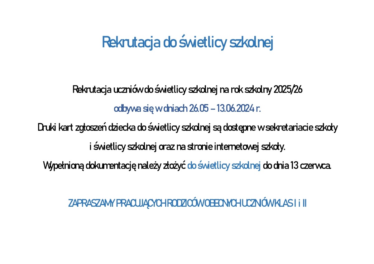 Strona główna » Aktualności » Rekrutacja do Świetlicy Szkolnej 2025-2026