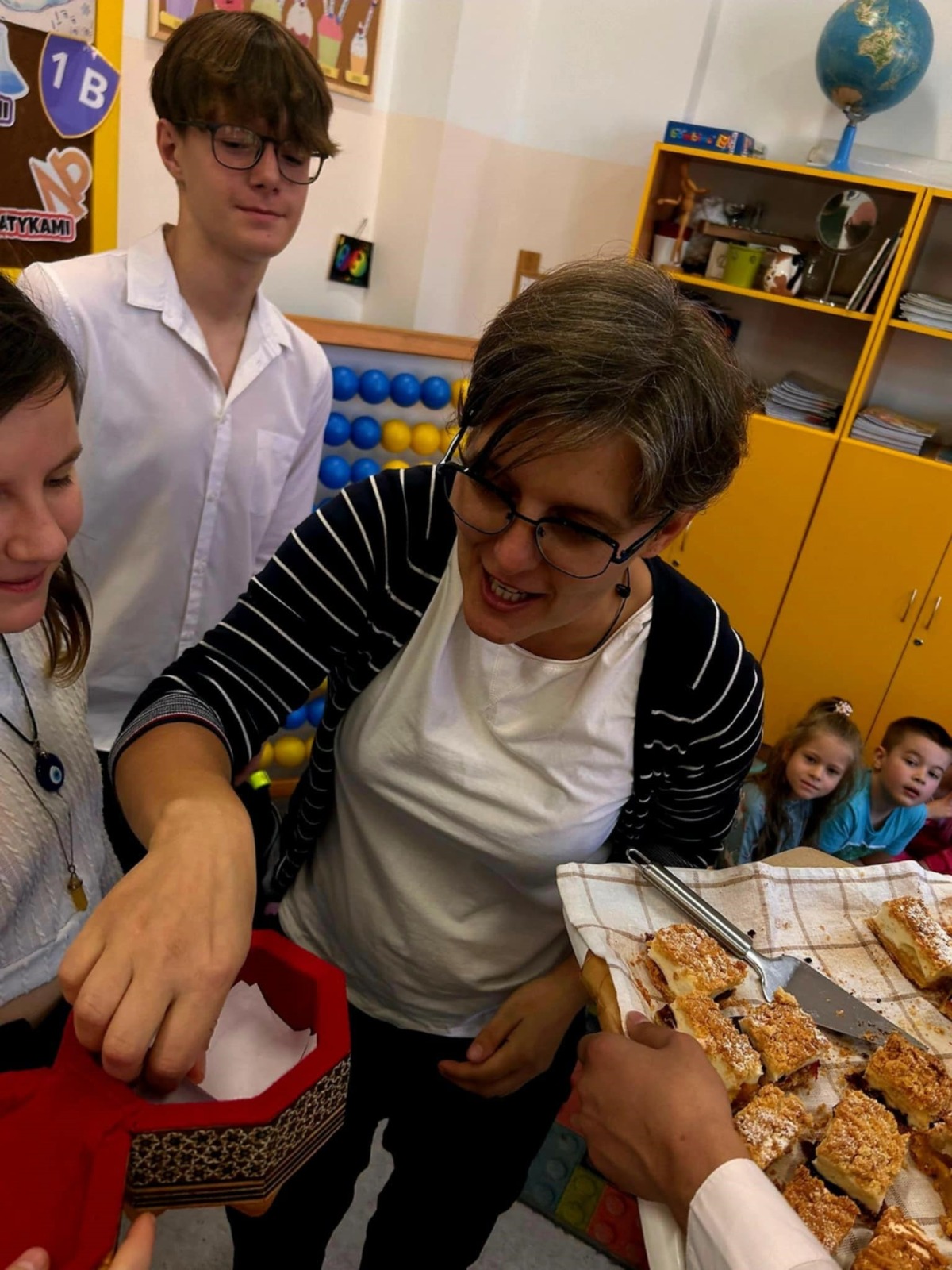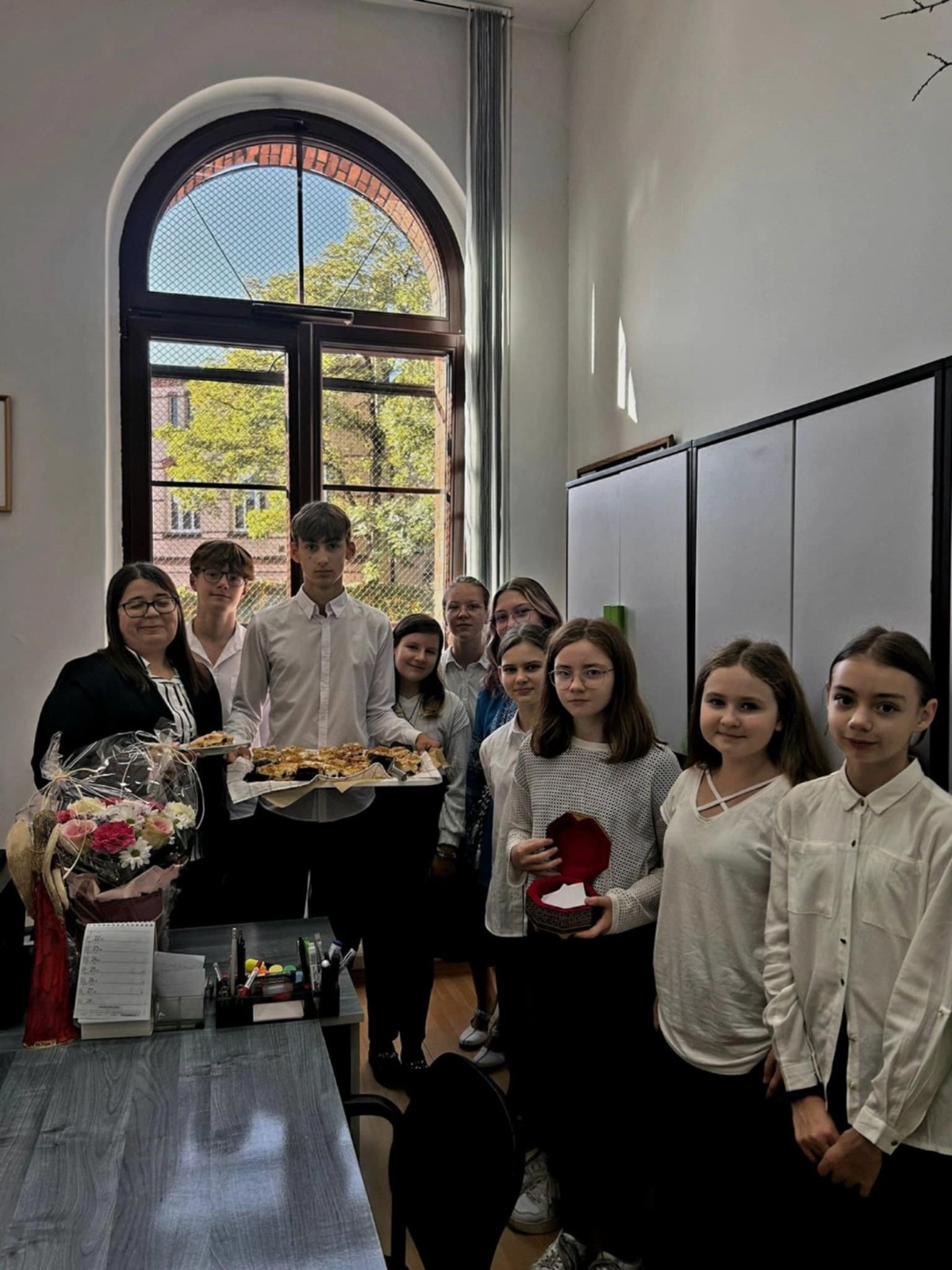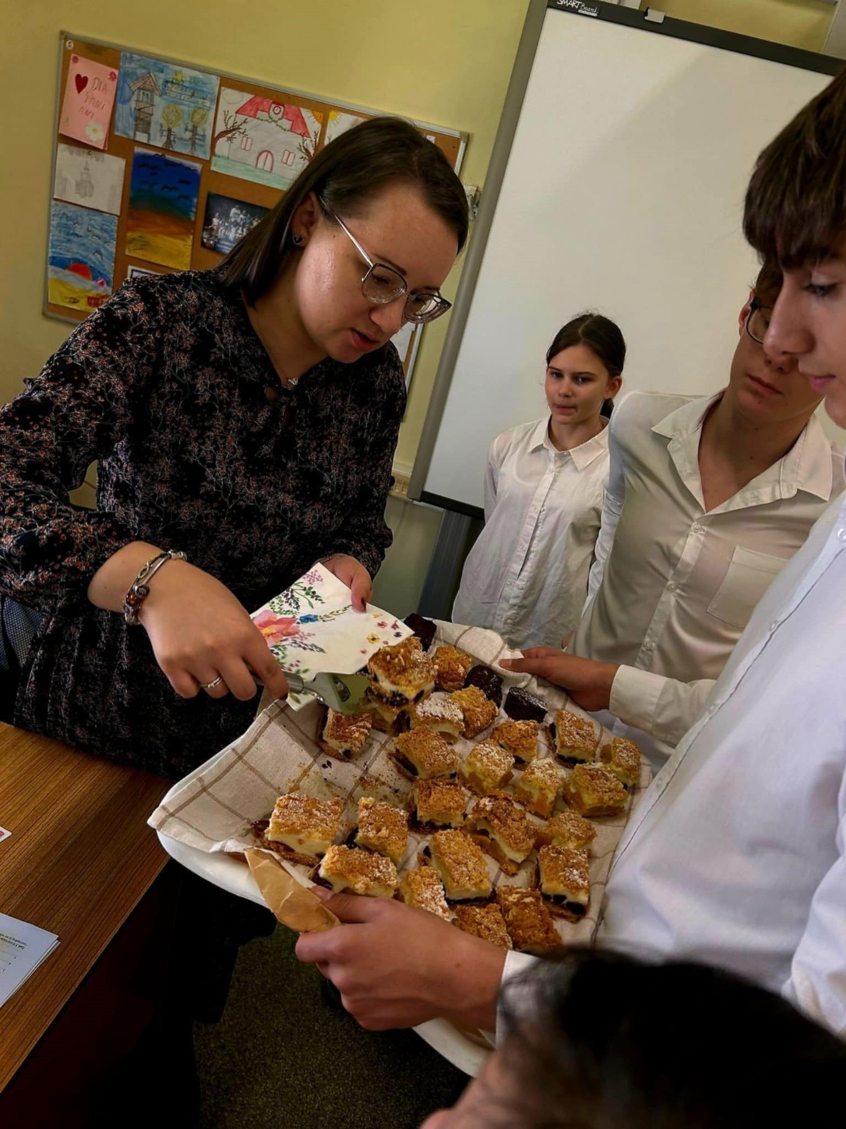 Już od czwartku pachniało u nas ciastami! Samorząd Uczniowski we współpracy z Radą Rodziców przygotował wyjątkową niespodziankę – piekliśmy ciasta dla naszych Pani Dyrektor, Nauczycieli oraz Pracowników Szkoły, aby w ten słodki sposób podziękować za ich poświęcenie, opiekę oraz wspólnie spędzony czas w murach „Jedynki”. W laboratorium przyszłości, pod czujnym okiem opiekunów Samorządu Uczniowskiego, przygotowywaliśmy wypieki, które w piątek rano wręczaliśmy naszym Nauczycielom i Pracownikom Szkoły, aby choć na chwilę osłodzić im trud codziennej pracy edukacyjnej. Życzymy wszystkim naszym pedagogom sukcesów, szczęścia i satysfakcji zarówno w życiu zawodowym, jak i prywatnym – bo szczęśliwy nauczyciel to skarb! „Edukacja to najpotężniejsza broń, której możesz użyć, aby zmienić świat.” – Nelson Mandela.