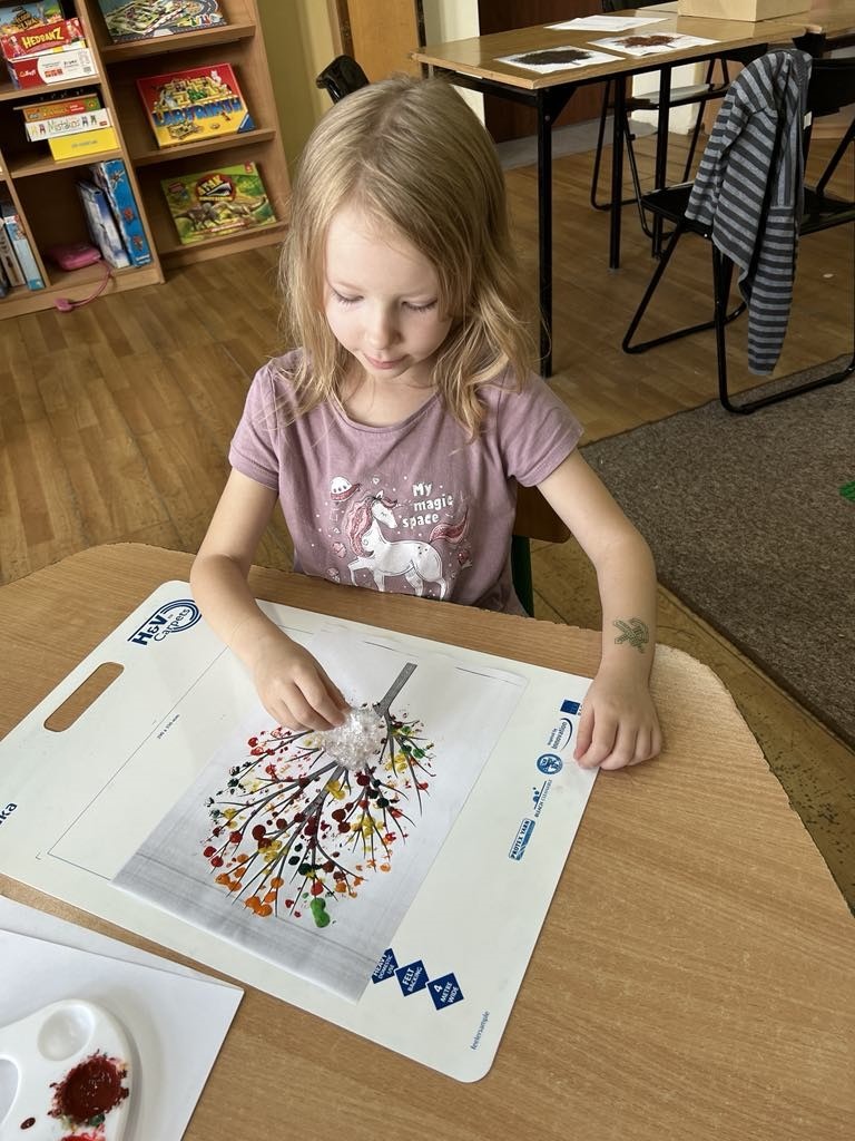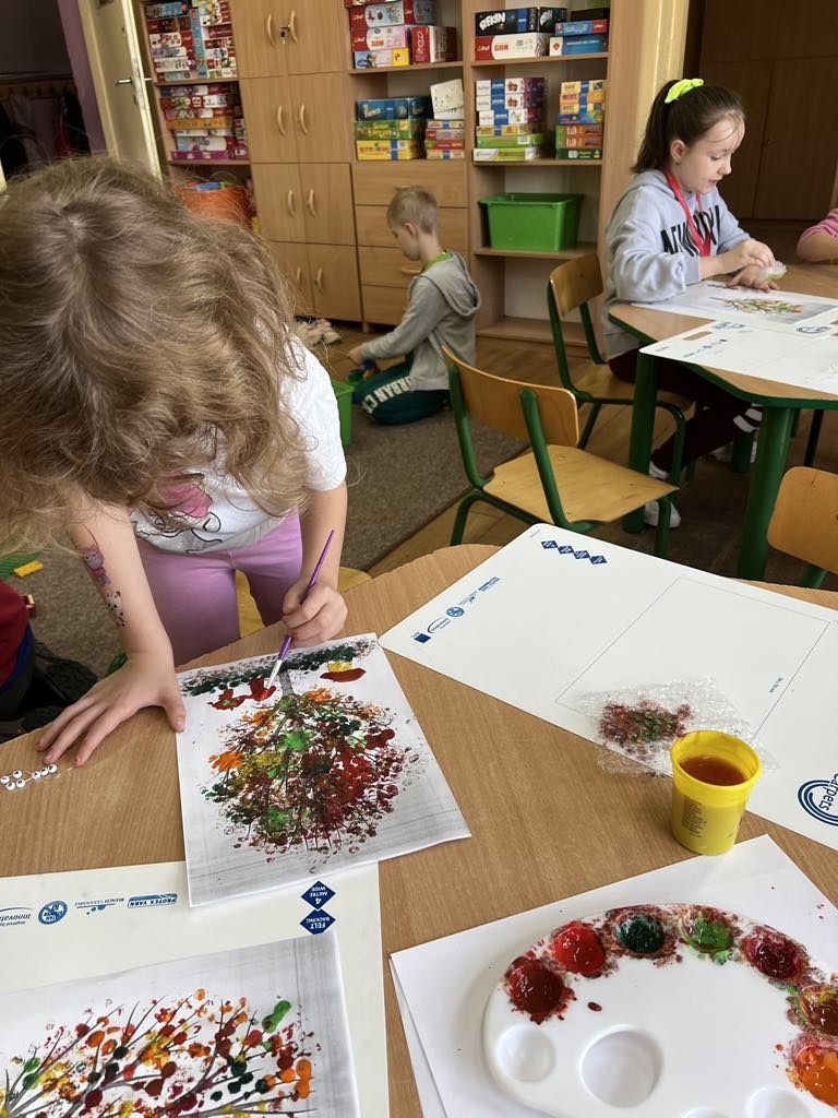 Światowy Dzień Drzewa przez admin|Opublikowano 11 października, 2024 Światowy Dzień Drzewa w świetlicy szkolnej. Prace wykonane przy użyciu farb i folii bąbelkowej
