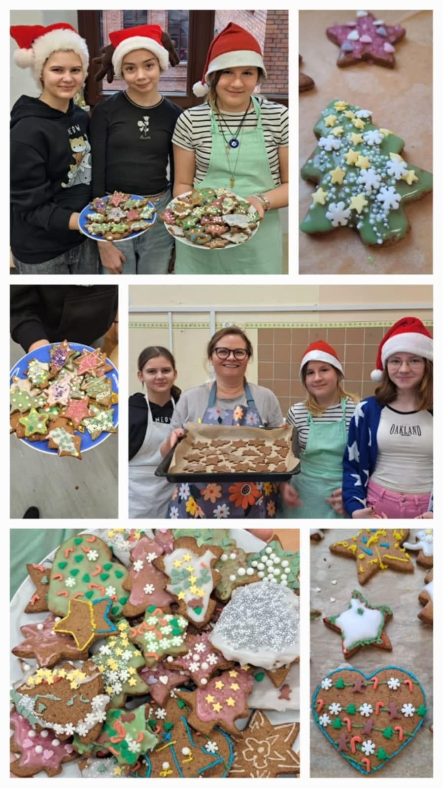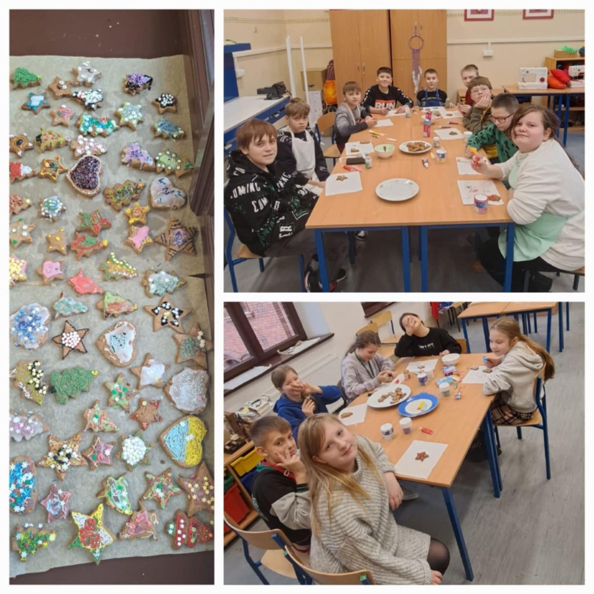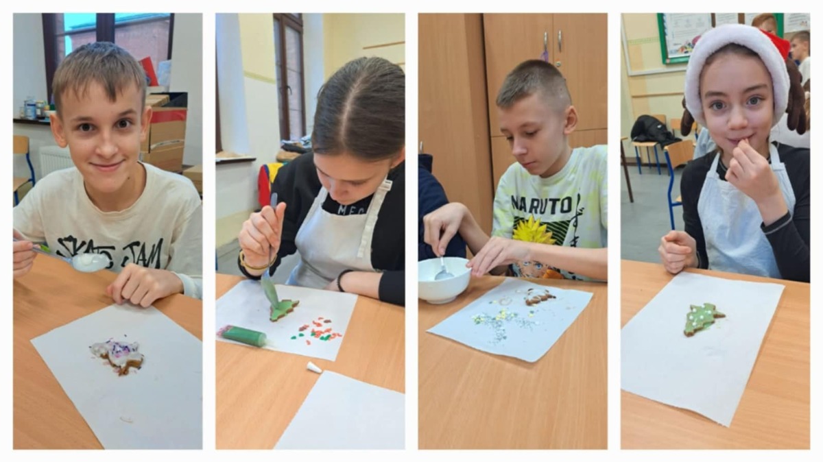 19 grudnia w naszym Laboratorium Przyszłości odbyły się wyjątkowe warsztaty piernikarskie dla klas 8a, 6b, 5a i 5b. Pod czujnym okiem pani Renaty oraz z pomocą pani Tamary uczniowie podczas lekcji techniki, plastyki i etyki piekli oraz dekorowali aromatyczne pierniczki. Podczas warsztatów odwiedziła nas również pani wicedyrektor Ania Rosińska, która z radością włączyła się w dekorowanie pierniczków razem z klasą 5b. Dzięki temu wydarzenie nabrało jeszcze bardziej rodzinnego i ciepłego charakteru. W całej szkole unosił się cudowny zapach świątecznych pierników, a w tle rozbrzmiewały świąteczne piosenki, które na przerwach serwował nam Samorząd Uczniowski. Cele zajęć: Przygotowanie do Wigilii klasowej jako ważnego wydarzenia integracyjnego. Rozwijanie pasji kulinarnych i kreatywności uczniów. Wykorzystanie sprzętu z Laboratorium Przyszłości. Nauka współpracy i dzielenia się obowiązkami. Każda klasa z ogromnym zaangażowaniem tworzyła swoje piernikowe dzieła na jutrzejszą Wigilię. Wspólna praca, zapach cynamonu i goździków, a także świąteczna atmosfera sprawiły, że poczuliśmy magię nadchodzących świąt. Jak powiedział Charles Dickens: „Nie ma nic piękniejszego niż święta spędzone w gronie tych, którzy są dla nas ważni.” Zobaczcie sami, jak pracowaliśmy z pasją i radością, by jutro wspólnie świętować klasową Wigilię. #LaboratoriumPrzyszłości #ŚwiątecznePierniczki #MagiaWspólnychChwil #ŚwiętaWszkole #PrzygotowaniaDoWigilii #SamorządUczniowski #ZapachŚwiąt #RadośćTworzenia #RazemNajlepiej