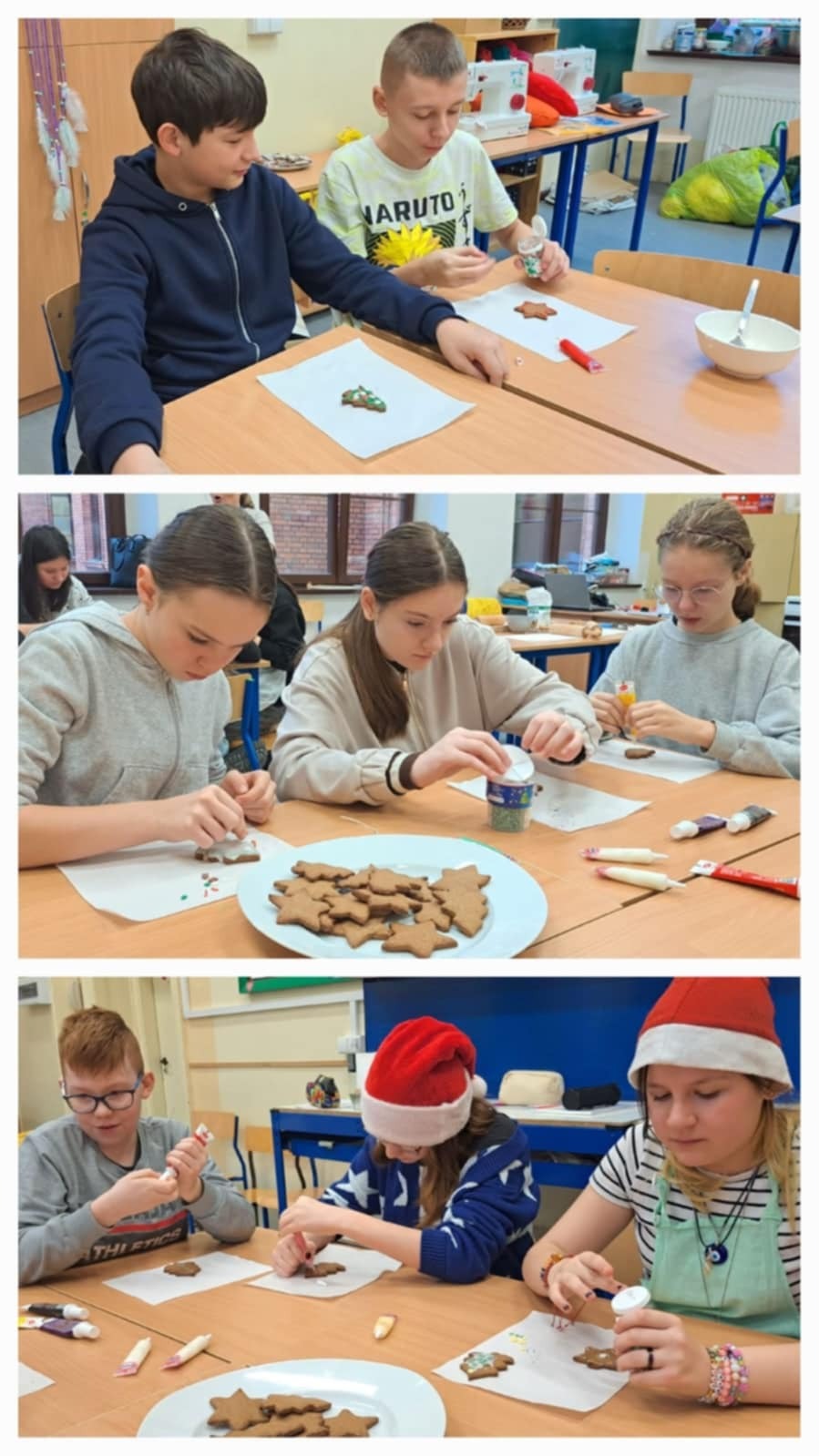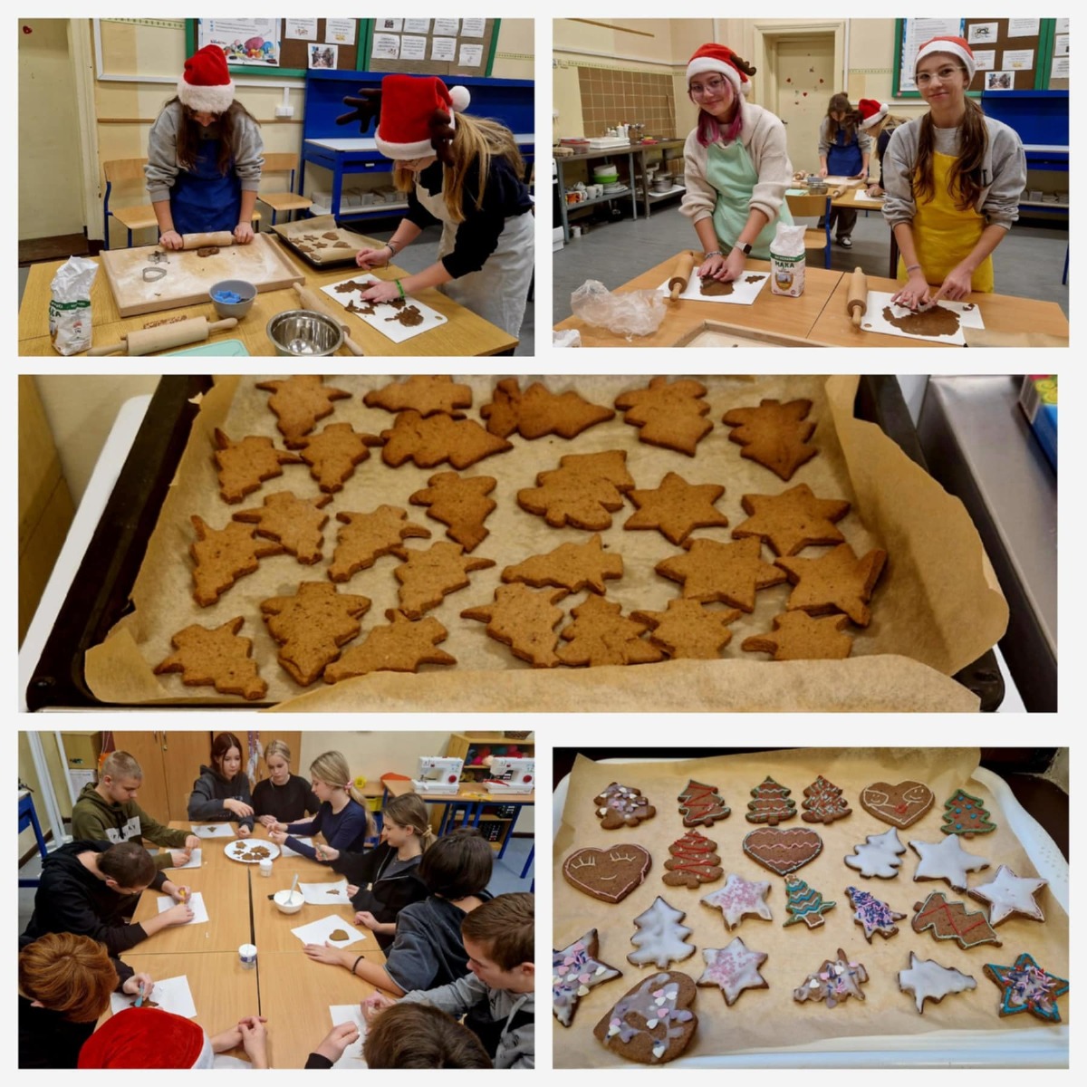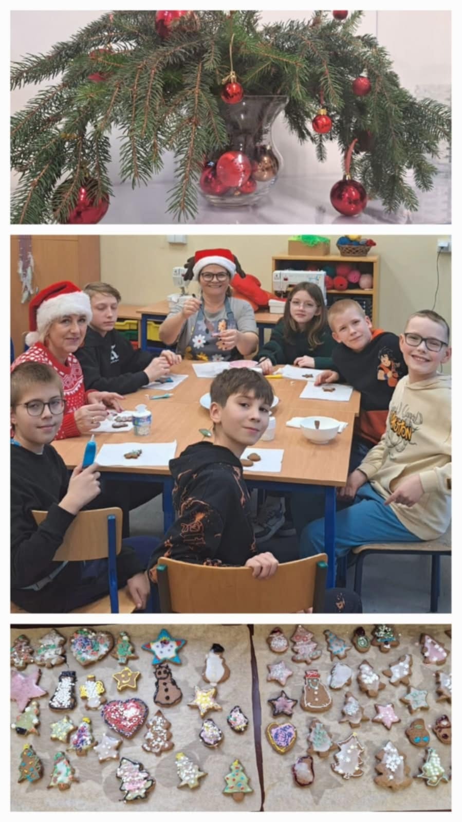 19 grudnia w naszym Laboratorium Przyszłości odbyły się wyjątkowe warsztaty piernikarskie dla klas 8a, 6b, 5a i 5b. Pod czujnym okiem pani Renaty oraz z pomocą pani Tamary uczniowie podczas lekcji techniki, plastyki i etyki piekli oraz dekorowali aromatyczne pierniczki. Podczas warsztatów odwiedziła nas również pani wicedyrektor Ania Rosińska, która z radością włączyła się w dekorowanie pierniczków razem z klasą 5b. Dzięki temu wydarzenie nabrało jeszcze bardziej rodzinnego i ciepłego charakteru. W całej szkole unosił się cudowny zapach świątecznych pierników, a w tle rozbrzmiewały świąteczne piosenki, które na przerwach serwował nam Samorząd Uczniowski. Cele zajęć: Przygotowanie do Wigilii klasowej jako ważnego wydarzenia integracyjnego. Rozwijanie pasji kulinarnych i kreatywności uczniów. Wykorzystanie sprzętu z Laboratorium Przyszłości. Nauka współpracy i dzielenia się obowiązkami. Każda klasa z ogromnym zaangażowaniem tworzyła swoje piernikowe dzieła na jutrzejszą Wigilię. Wspólna praca, zapach cynamonu i goździków, a także świąteczna atmosfera sprawiły, że poczuliśmy magię nadchodzących świąt. Jak powiedział Charles Dickens: „Nie ma nic piękniejszego niż święta spędzone w gronie tych, którzy są dla nas ważni.” Zobaczcie sami, jak pracowaliśmy z pasją i radością, by jutro wspólnie świętować klasową Wigilię. #LaboratoriumPrzyszłości #ŚwiątecznePierniczki #MagiaWspólnychChwil #ŚwiętaWszkole #PrzygotowaniaDoWigilii #SamorządUczniowski #ZapachŚwiąt #RadośćTworzenia #RazemNajlepiej