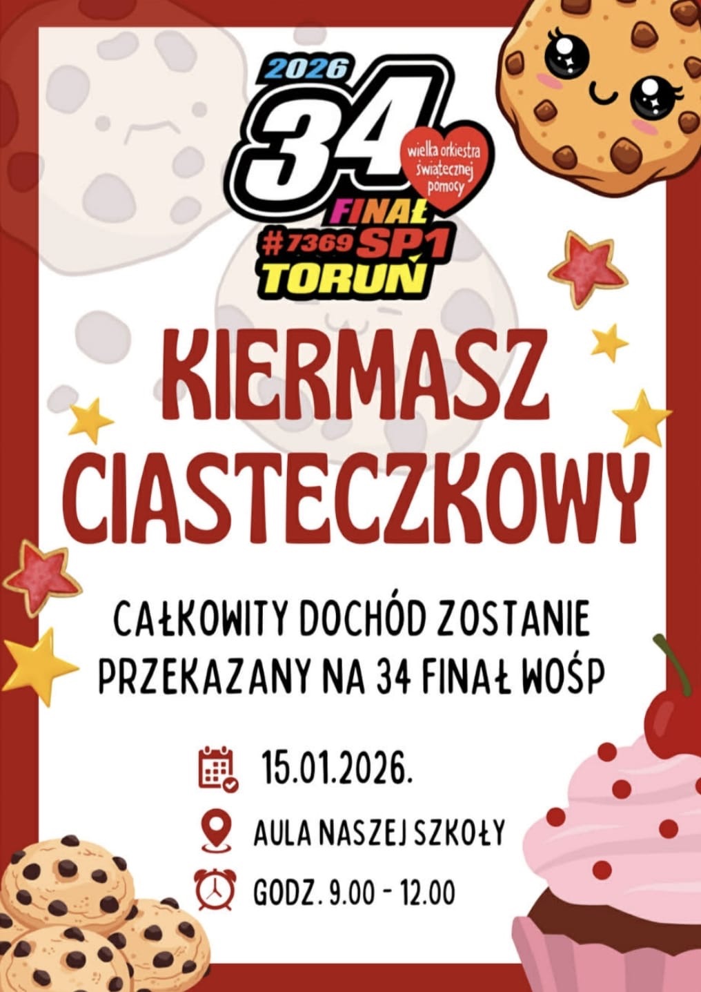 Kiermasz ciasteczkowy, z którego cały dochód zostanie przeznaczony na 34. Finał Wielkiej Orkiestry Świątecznej Pomocy.